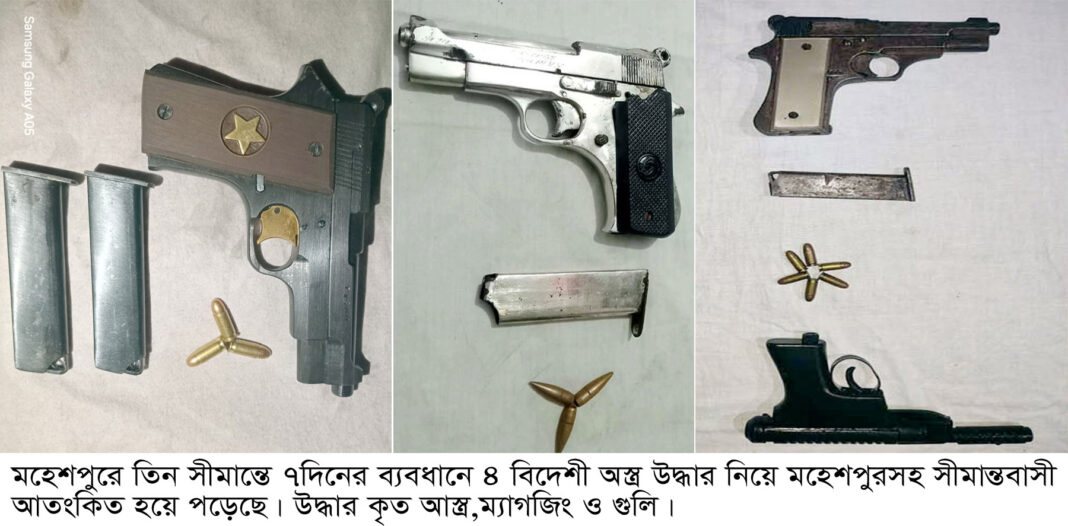 ৭দিনের ব্যবধানে ৪ বিদেশী অস্ত্র ও গুলি উদ্ধার নিয়ে মহেশপুরসহ সীমান্তবাসী হঠাৎ করেই আতংকিত হয়ে পড়েছে।