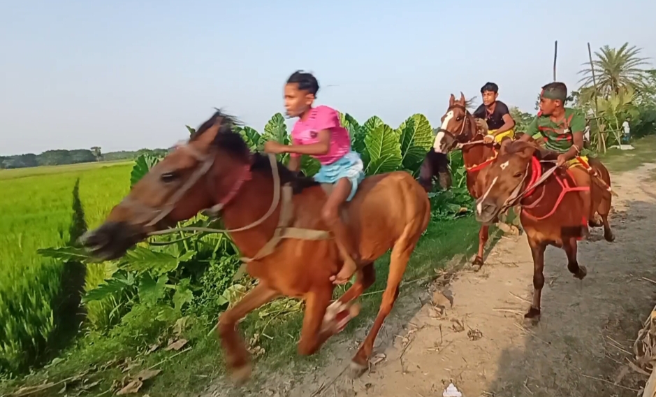 ঘোড়ার ছুটে চলা দৌড় দেখতে ভিড় জমায় আশপাশের এলাকার হাজার,হাজার নারী-পুরুষ শিশু-কিশোর।