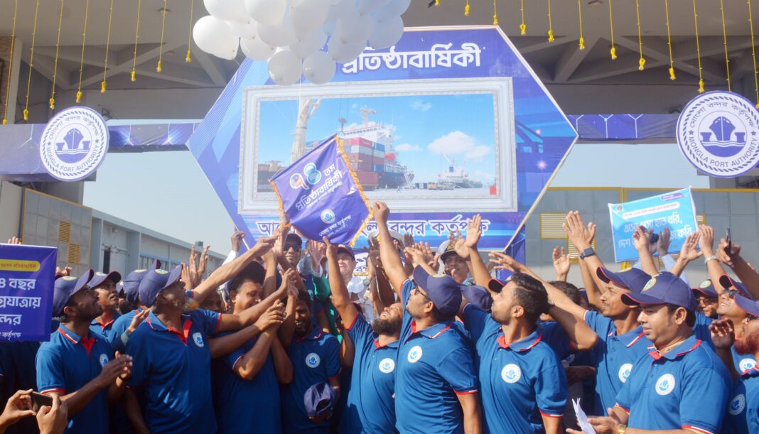 এ উপলক্ষ্যে রবিবার সকালে মোংলা বন্দরের স্টাফিং এন্ড আনস্টাফিং শেড এ আলোচনাসভা ও সম্মাননা ক্রেস্ট প্রদান অনুষ্ঠানে প্রধান অতিথি ছিলেন মোংলা বন্দর কর্তৃপক্ষের চেয়ারম্যান রিয়ার এডমিরাল শাহীন রহমান।