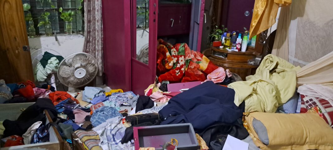 এ সময় এ্যাড. মোস্তাফিজুর রহমানের মা বলেন, আনুমানিক ২ টা থেকে ভোর ৪টা পযন্ত ৬জনের ডাকাত দল মুখে মাক্স দিয়ে ঘরের ভিতর ঠুকে ধারালো অস্ত্র গলায় ধরে হাত বেধে আমার এবং আমার মেয়ের গলার হার,চেইন,আংটি,রুলিসহ প্রায় ৬ভরি স্বর্ণ ও নগদ প্রায় ৩০ হাজার টাকা হাতিয়ে নিয়ে যায়। তবে অবাক করা বিষয় হচ্ছে ডাকাত দলের মধ্যে ১জনের ব্যবহার খুব ভাল ছিল এবং যাওয়ার সময় আমার কাছে মাফ চেয়ে যায়।