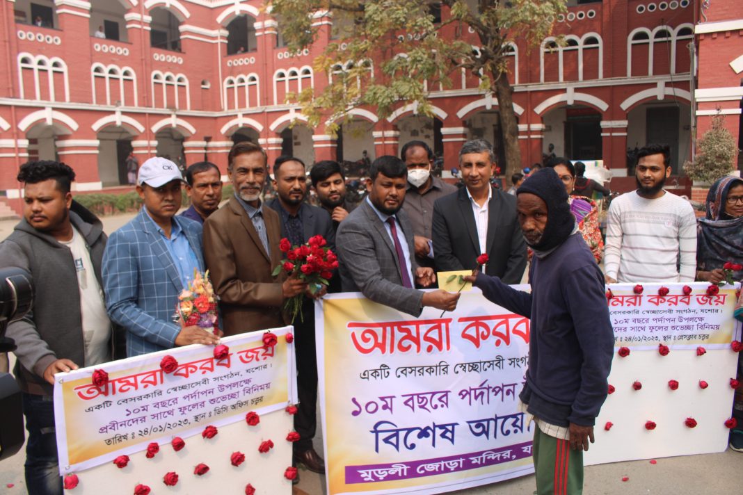 নিজস্ব প্রতিবেদকঃ “আমরা করব জয়” এর ৯ পেরিয়ে ১০ বছরে পদার্পণ উপলক্ষে প্রবীনদের সাথে ফুলেল শুভেচ্ছা ও নগদ অর্থ বিতরনের আনুষ্ঠানিক উদ্বোধন করা হয়েছে। মঙ্গলবার সকালে কালেক্টরেট ভবনের সামনে আনুষ্ঠানের উদ্বোধন করেন রফিকুল ইসলাম অতিরিক্ত জেলা প্রশাসক যশোর।