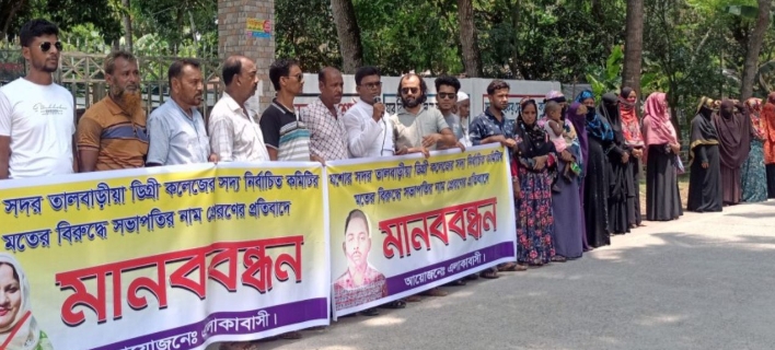 মঙ্গলাবার সকালে যশোর সদরের তালবাড়ীয়া ডিগ্রি কলেজের গেটের সামনে এলাকাবাসীর ব্যানারে এ মানববন্ধন কর্মসূচি অনুষ্ঠিত হয়।
