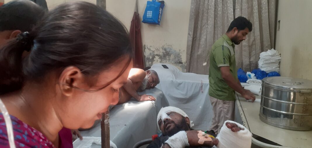 হাসপাতালের সার্জারি বিভাগের ইন্টান চিকিৎসক হুমাইরা ডাঃ তানিমের উদ্বৃতি দিয়ে বলেন তার মাথায় কয়েকটি ধারালো অস্ত্রে আঘাত আছে। এছাড়াও দুই হাত ও দুই পায়ের একাধিক জায়গায় ধারালো অস্ত্রে আঘাত আছে। রোগীর অবস্থা ভালো মনে না হওয়ায় ঢাকায় রেফার্ড করা হয়েছে।