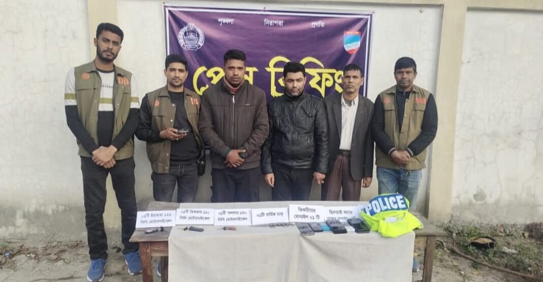যশোরসহ আশেপাশে বিভিন্ন এলাকায় পুলিশ পরিচয় ছিনতাই ও ডাকাতির ঘটনার সাথে জড়িত থাকার অভিযোগে যশোর ডিবি পুলিশ ছিনতাইকারী চক্রের তিন সদস্যকে আটক এবং তাদের কাছ থেকে ছিনতাই কাজে ব্যবহৃত পুলিশ রিফলেকটিং ভেস্ট, চাকু এবং ছিনতাইকৃত তিনটি মোটরসাইকেল উদ্ধার করেছে।