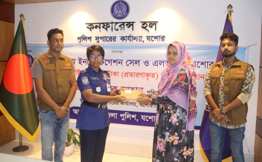 নিজস্ব প্রতিনিধি: সাইবার অপরাধের কবলে পড়ে প্রতারিতদের কাছ থেকে উদ্ধার করা মোবাইল ফোন, নগদ অর্থ ও অনলাইন অ্যাকাউন্টের নিয়ন্ত্রণ ফেরত দিয়েছে যশোর জেলা পুলিশ। সোমবার সকাল সাড়ে ১০টায় যশোর পুলিশ সুপারের কার্যালয়ের কনফারেন্স রুমে এই হস্তান্তর অনুষ্ঠান হয়। এতে প্রধান অতিথি হিসেবে উপস্থিত ছিলেন যশোরের পুলিশ সুপার রওনক জাহান। তিনি ভুক্তভোগীদের হাতে মোবাইল ও অর্থ তুলে দেন।