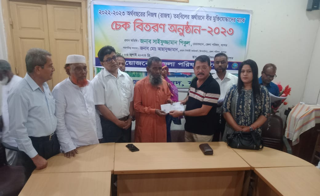 শেখ সোহরাব: যশোর জেলা পরিষদের উদ্যোগে ১শ জন বীর মুক্তিযোদ্ধার মাঝে জেলা পরিষদের চেক প্রদান করা হয়েছে। ২০২২-২০২৩ অর্থ বছরে জেলা পরিষদের নিজস্ব (রাজস্ব) তহবিল থেকে প্রত্যেক মুক্তিযোদ্ধাকে ৫ হাজার টাকার চেক প্রদান করা হয়।
