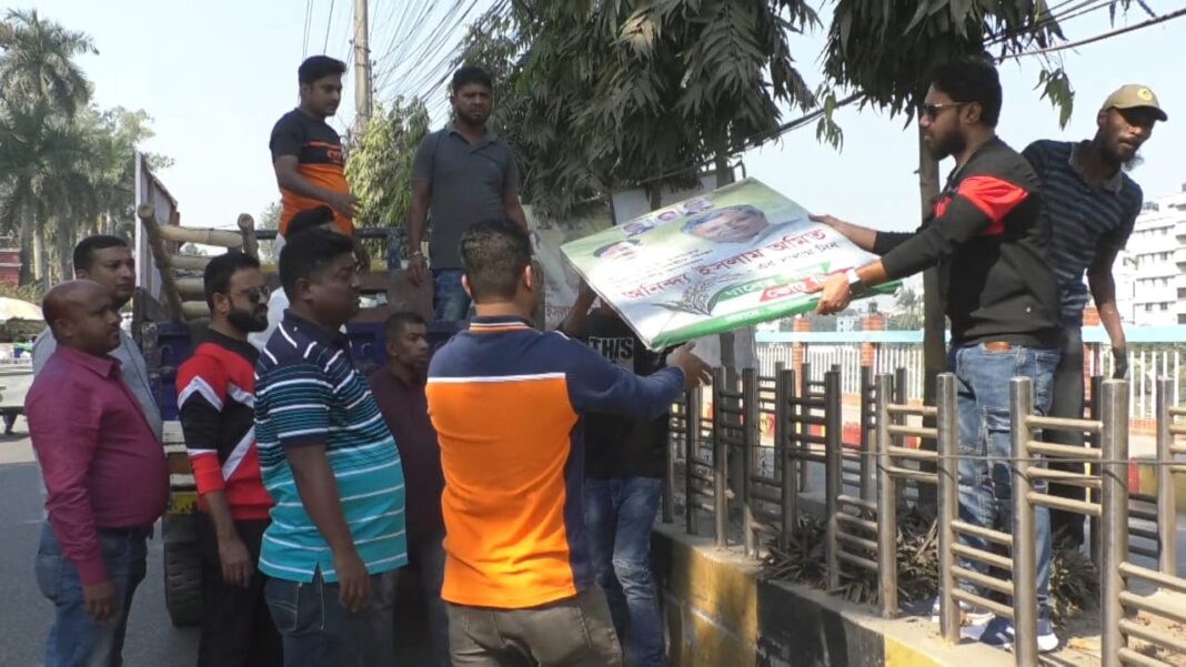 আসন্ন ত্রয়োদশ জাতীয় সংসদ নির্বাচনের তফসিল ঘোষণার পর নির্বাচন কমিশনের (ইসি) নির্দেশনায় যশোরে আগাম প্রচার সামগ্রী অপসারণ শুরু হয়েছে। শনিবার সকালে শহরের বিভিন্ন এলাকায় ব্যানার, ফেস্টুন, পোস্টার ও বিলবোর্ড খুলে নেওয়ার কাজ শুরু করে বিএনপি নেতাকর্মীরা। সন্ধ্যা পর্যন্ত এ কার্যক্রম চলবে বলে জানিয়েছে দলটি।