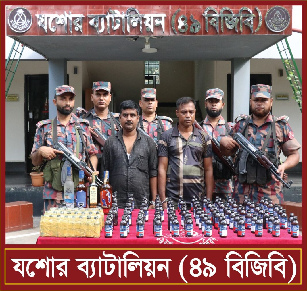 বিজিবি জানায়, আটককৃতরা হলেন ভারতের পশ্চিমবঙ্গের পূর্ব বর্ধমান জেলার ধোবা গ্রামের ইন্দ্রজিৎ হালদার (৩৮) এবং সাতক্ষীরার কলারোয়া উপজেলার বোয়ালিয়া গ্রামের জাহাঙ্গীর আলম (৩৭)। তাদের বহন করা ব্যাগ থেকে বিশেষ কায়দায় লুকানো ফেন্সিডিল ও মদ উদ্ধার করা হয়। এ সময় তাদের কাছ থেকে একটি মোবাইল ফোন ও নগদ ১৮ হাজার টাকাও জব্দ করা হয়। উদ্ধারকৃত মাদক ও মালামালের আনুমানিক বাজারমূল্য ৮৪ হাজার টাকা।
