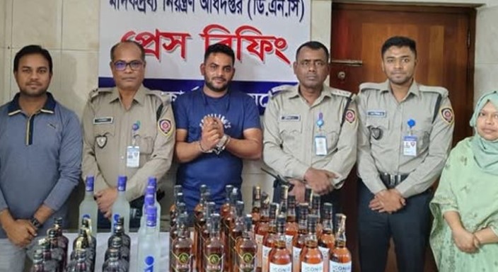 পরে বাসে উঠে বি-১ নম্বর সিটে বসা আসিফ হাসানকে আটক করা হয়। তার কাছে ও পায়ের নিচে থাকা তিনটি স্কুল ব্যাগ থেকে বিভিন্ন ব্র্যান্ডের ৪২ বোতল বিদেশি মদ জব্দ করা হয়।