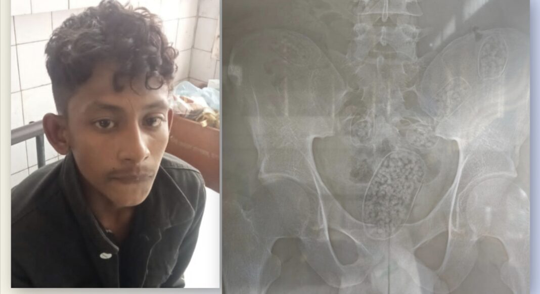 নিজস্ব প্রতিবেদক: যশোরে পেটভর্তি ইয়াবাসহ মাসুদ রানা (২০) নামে এক যুবককে আটক করেছে র্যাব সদস্যরা। মঙ্গলবার রাত দেড়টার দিকে শহরের মণিহার বাসস্ট্যান্ড এলাকা থেকে তাকে আটক করা হয়। এরপর তাকে যশোর জেনারেল হাসপাতাল ভর্তি করা হয়েছে।
