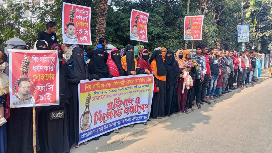 যশোরে শিশু ধর্ষককে ফাঁসির দাবিতে বিক্ষোভ