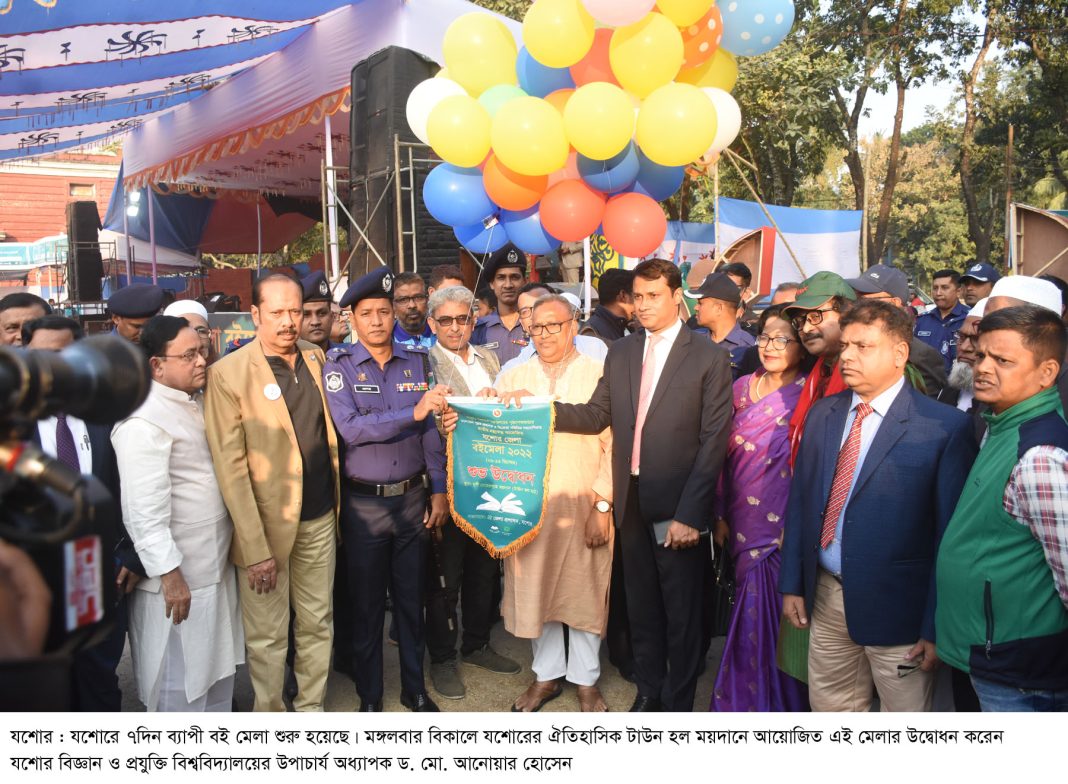 নিজস্ব প্রতিবেদক: গতকাল যশোরের টাউন হল মাঠে সপ্তাহব্যাপী বই মেলার উদ্বোধন করেন যশোর বিজ্ঞান ও প্রযুক্তি বিশ্ববিদ্যালয়ের উপাচার্য অধ্যাপক ডঃ আনোয়ার হোসেন। পরে এক আলোচনা সভায় সভাপতি ছিলেন যশোর জেলা প্রশাসক তমিজুল ইসলাম খান। প্রধান অতিথি ছিলেন যশোর বিজ্ঞান ও প্রযুক্তি বিশ্ববিদ্যালয়ের উপাচার্য অধ্যাপক ডঃ আনোয়ার হোসেন। এ সময় উপস্থিত ছিলেন সংস্কৃতি মন্ত্রালয়ের যুগ্ম সচিব মোখলেছুর রহমান আকন্দ, পুলিশ সুপার প্রলয় কুমার জোয়ারদার, বীর মুক্তিযোদ্ধা রবিউল আলম, জেলা শিা অফিসার একেএম গোলাম আযম, পুস্তক প্রকাশক সমিতির পরিচালক আবুল বাশার, অতিরিক্ত জেলা প্রশাসক রফিকুল হাসান, সরকারি মাইকেল মধুসূদন কলেজের প্রিন্সিপাল মর্জিনা আক্তার রোজী, যশোর জেলা আওয়ামী লীগের সহ সভাপতি মেহেদী হাসান মিন্টু, যশোর জেলা মৎস্য জীবী লীগের আহবায়ক মোঃ আবু তোহা। প্রধান অতিথি তার বক্তৃতায় বলেন, বই পড়ার প্রতি আগ্রহ বর্তমান সময়ে অনেক কমে গেছে। এটা অত্যন্ত দুঃখ জনক। কারণ দেশকে এগিয়ে নিতে হলে শিা, সংস্কৃতি ও বিজ্ঞানের উন্নতি করতে হলে বই পড়তে হবে, এ ব্যাপারে সকলের ভুমিকা রাখা দরকার।