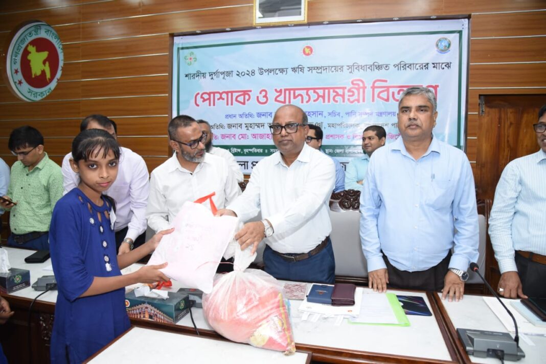 নিজস্ব প্রতিবেদক: শারদীয় দুর্গাপূজা উপলক্ষ্যে জেলা প্রশাসন, যশোর এবং জেলা পরিষদএর যৌথ উদ্যোগে  ঋষি সম্প্রদায়ের ১৫৫টি সুবিধাবঞ্চিত পরিবারের মাঝে খাদ্যসামগ্রী এবং ১৬৫ জন শিশুর মাঝে পূজার উপহার হিসেবে পোশাক বিতরণ করা হয়েছে।