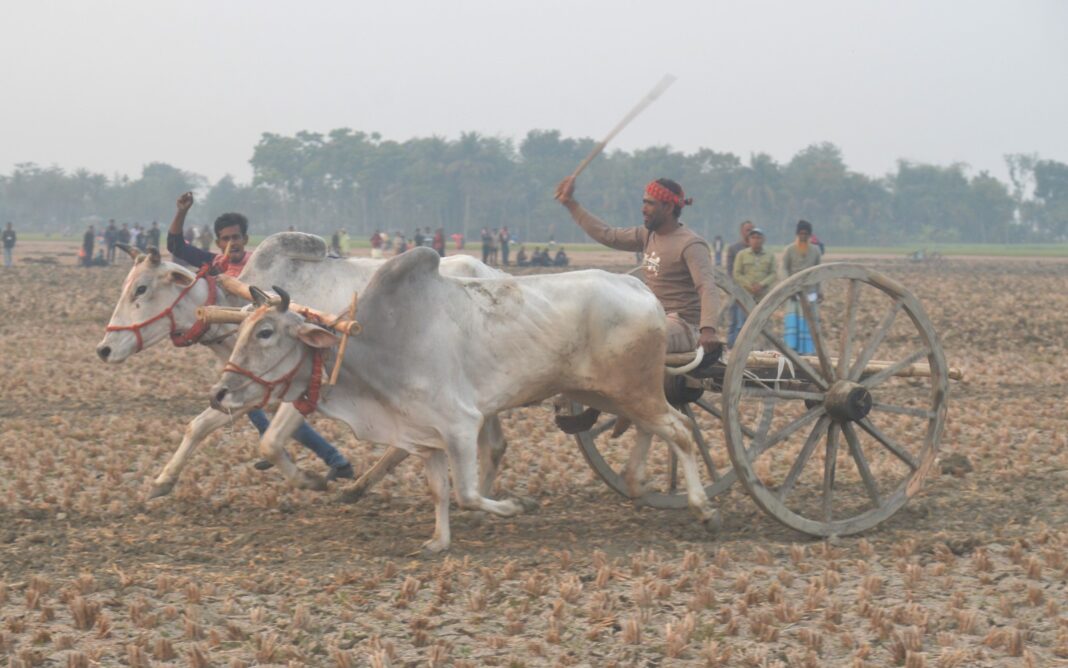 শীতের বিকাল, মিষ্টি রোদ্দুর, গ্রামীণ ঐতিহ্যবাহী গরুর গাড়ির দৌড় প্রতিযোগিতা,সেই প্রতিযোগিতা দেখতে নানা বয়সী মানুষের ঢল।