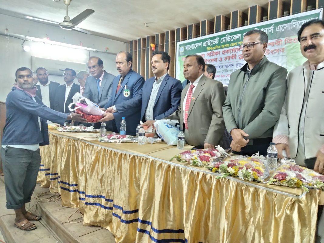 যশোরে বাংলাদেশ প্রাইভেট মেডিকেল প্রাকটিশর্নাস এসোসিয়েশন বিপিএমপিএ যশোর জেলা শাখার উদ্যোগে ১১৪ হকারের মাঝে মশারি ও পিঠা বিতরণ করা হয়েছে। মঙ্গলবার প্রেসক্লাব যশোর মিলায়তনে এ মশারি বিতরণ করা হয়।