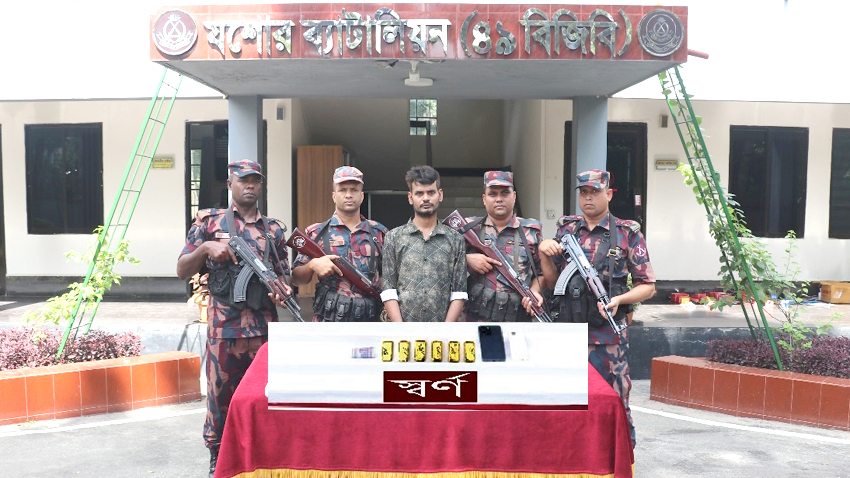 বিজিবি জানায়, শুক্রবার (৩১ অক্টোবর) সকাল সাড়ে ১০ টায় গোপন সংবাদের ভিত্তিতে ৪৯ বিজিবির একটি টহলদল শহরতলীর যশোর-নড়াইল মহাসড়কের দাইতলা এলাকায় অভিযান চালায়। এ সময় তারা আবু বক্কর সিদ্দিক এক যূবককে আটক করে। তার দেহ তল্লাশী চালিয়ে প্যান্টের পকেটে বিশেষভাবে লুকানো অবস্থায় ৭৩৫ গ্রাম ওজনের ৬টি স্বর্ণবার উদ্ধার করে। এছাড়া তার কাছ থেকে দুইটি মোবাইল ফোন ও নগদ টাকা জব্দ করা হয়। আটকদের বিরুদ্ধে আগে কোনো মামলা আছে কি না তা খতিয়ে দেখা হচ্ছে এবং স্বর্ণ পাচারের সাথে কারা জড়িত সে বিষয়ে খতিয়ে দেখা হচ্ছে।