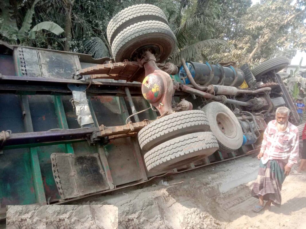 ট্রাক চালক হোসেন আলী বলেন, অন্য একটি গাড়ীকে সাইড দিতে গেলে বাম চাকা মাটিতে নামিয়ে দিই। মাটি সরে যাওয়ার কারনে বাম পাশে কাত হয়ে খাদে উল্টে যায়। আমার ও আমার হেলপারের কোনো ক্ষতি হয়নি।
