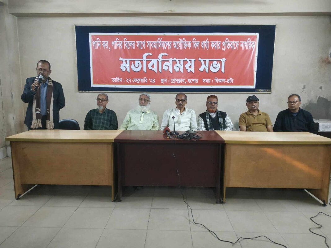 নিজস্ব প্রতিবেদক:পানি কর, পানির বিলের সাথে নতুন করে সাবমারসিবলের অযৌক্তিক বিল ধার্য করার প্রতিবাদে কর্মসূচি ঘোষণা করেছে যশোর পৌর নাগরিক কমিটি।