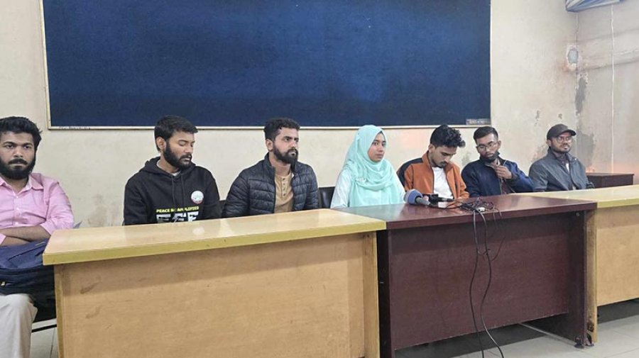 বিকাল ৫টার দিকে প্রথমে সংবাদ সম্মেলন করেন বৈষম্যবিরোধী ছাত্র আন্দোলনের যশোর জেলার যুগ্ম আহ্বায়ক সাদেকা শাহনী উর্মি ও বিভিন্ন বিভাগের শিক্ষার্থীরা।