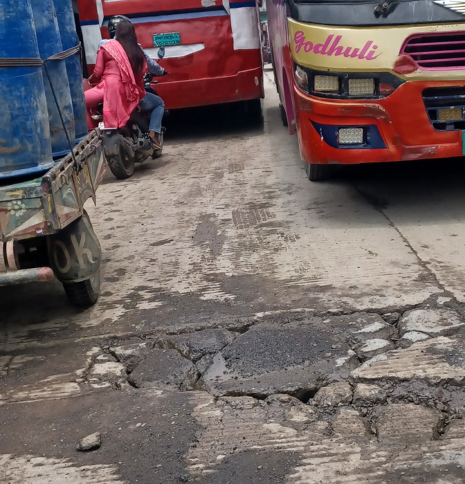 যানজটের ভোগান্তির সাথে নতুন করে যুক্ত হয়েছে যশোর-সাতক্ষীরা মহাসড়কের গরুহাট মোড় থেকে খাদ্যগুদাম পর্যন্ত প্রায় ১কিলোমিটার ঢালাই রাস্তার ছোট বড় মিলিয়ে ৪৭টি গর্ত।এর আগেও একাধিকবার কর্তৃপক্ষ অভিযোগ পেলে রাস্তার গর্তের পুটিং দিয়ে দায় এড়িয়ে গেছেন। গেলো কয়েকদিনের টানা বর্ষনে সে সমস্ত গর্তে পানি জমে যানবাহনের যাতায়তে এখন খানা-খন্দে পরিনত হয়েছে।