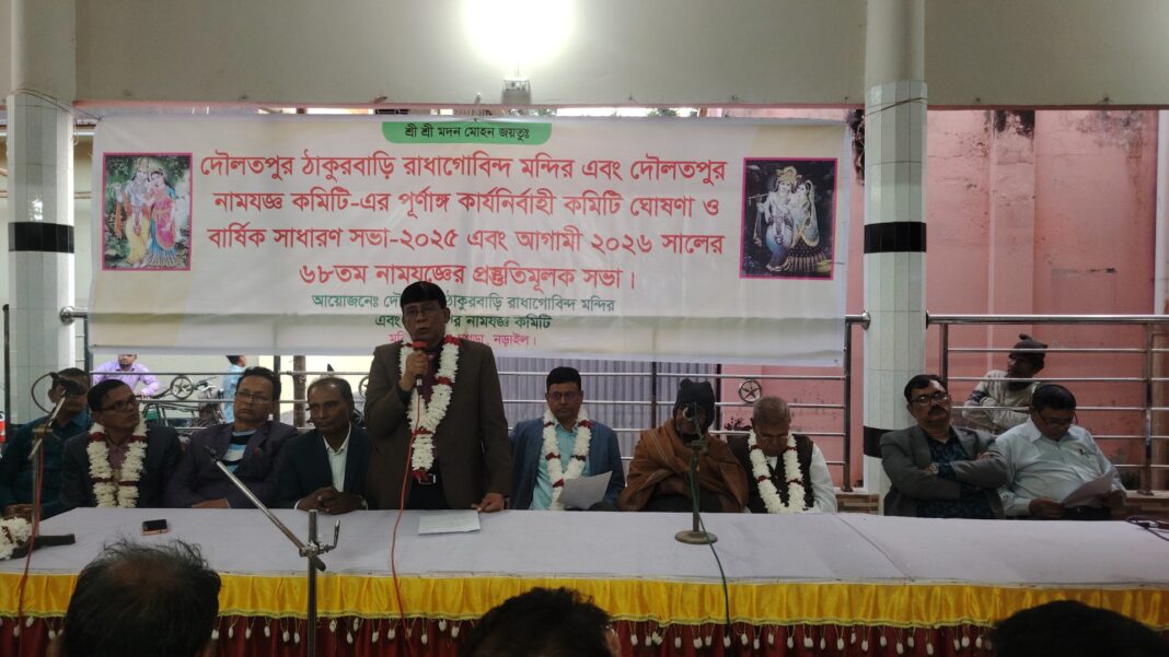 নড়াইলের লোহাগড়া উপজেলার ইতনা ইউনিয়নের দৌলতপুর ঠাকুরবাড়ি রাধা গোবিন্দ মন্দিরের কার্যনির্বাহী কমিটির পূর্ণাঙ্গ নাম ঘোষনা ও ৬৮ তম নাম যজ্ঞের প্রস্তুতিমুলক সভা অনুষ্ঠিত হয়েছে।