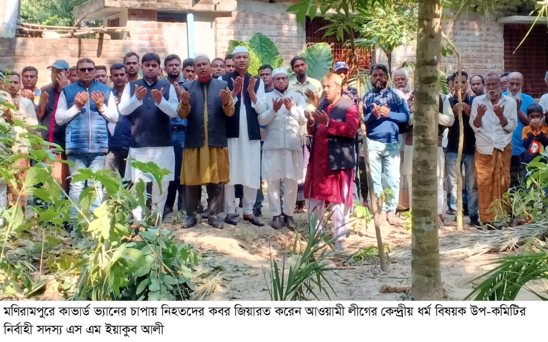 এর আগে স্থানীয় সরকার, পল্লী উন্নয়ন ও সমবায় প্রতিমন্ত্রী স্বপন ভট্টাচার্য্য, বিভিন্ন রাজনৈতিকদলের নেতৃবৃন্দ, জনপ্রতিনিধিসহ নানা শ্রেণিপেশার মানুষ কাভার্ড ভ্যান চাপায় নিহতদের বাড়িতে ছুটে যান। তারা শোকাহত নিহতদের স্বজনদের সান্তনা দেন। মর্মান্তিক দুর্ঘটনায় নিহতদের মধ্যে পিতা-পুত্রের একসাথে মৃত্যুর ঘটনাটি ছিল অত্যন্ত হৃদয় বিদারক। এভাবে পিতা-পুত্রের মারা যাওয়ার ঘটনায় স্বজনদের সান্তনা দিতে গিয়ে নিজেরাই চোখের পানি সংবরণ করতে পারেননি অনেকেই। এদিকে একই গ্রামে চার জনের মৃত্যুর ঘটনায় পুরো গ্রামে শোকের ছায়া নেমে এসেছে।