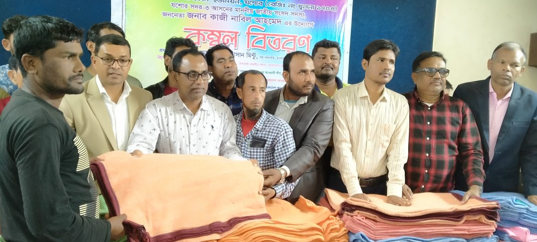 নিজস্ব প্রতিবেদকঃ যশোর ৩ সংসদীয় আসনের সংসদ সদস্য কাজী নাবিল আহমেদের পক্ষে সংবাদপত্র হকার্স ইউনিয়নের সদস্যের মাঝে কম্বল বিতরণ করা হয়েছে। বুধবার প্রেসকব যশোরের হল রুমে প্রায় দুইশত হকারের মাঝে এ কম্বল বিতরণ করেন জেলা আওয়ামী লীগের সহ-সভাপতি মেহেদী হাসান মিন্টু । জেলা হকার্স ইউনিয়নের নেতা অব্দুর রাজ্জাকের সভাপতিত্বে অনুষ্ঠানে বিশেষ অতিথি হিসাবে উপস্থিত ছিলেন, জেলা আওয়ামী লীগের উপদেষ্টা আবুল হোসেন খান।