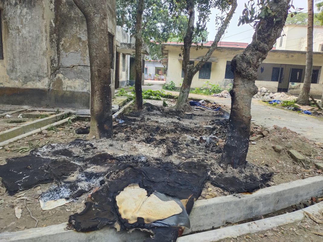 বুধবার বেলা ১১ টার দিকে হাসপাতাল বাউন্ডারি মধ্যে ৩ টি ধরন্ত আমগাছ ও ১ টি কাঁঠাল গাছের গোড়ায় হাসপাতালে পুরাতন বিছানা বালিশের চাদর,ফোমের ম্যাট্রেসসহ ময়লা আবর্জনা জড়ো করে তাতে আগুন ধরিয়ে দেওয়া হয়। প্রায় দেড় ঘণ্টাব্যাপী আগুন জ্বলার কারণে সেখানে থাকা চারটি গাছই পুড়ে যাই। এভাবে জীবন্ত গাছ পুড়তে দেখে হাসপাতালে সেবা নিতে আসা অনেকেই ক্ষুব্ধ প্রতিক্রিয়া ব্যক্ত করেন। এ সময় হাসপাতালের স্টাফ ও সাধারন জনগণ আগুন নেভানোর চেষ্টা করেন। স্থানীয় সচেতন মহল ইচ্ছাকৃতভাবে হাসপাতাল এরিয়ার মধ্যে আগুন লাগানোর বিষয়টি তদন্তপূর্বক প্রয়োজনীয় ব্যবস্থা গ্রহণের জন্য সংশ্লিষ্ট দপ্তরের উপরিমহলের আশু দৃষ্টি কামনা করেছেন।