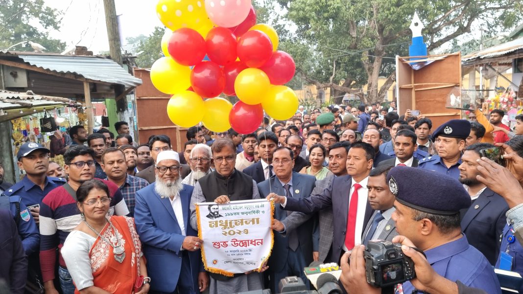 কেশবপুর প্রতিনিধি: যশোরের কেশবপুরে কপোতা নদের তীরে বসেছে সপ্তাহব্যাপী মধুমেলা। বুধবার বিকালে মেলা উদ্বোধন করেন সংস্কৃতি প্রতিমন্ত্রী কেএম খালিদ। মহাকবি মাইকেল মধুসূদন দত্তের ১৯৯ তম জন্ম জয়ন্তি উপলে জেলা প্রশাসনের প থেকে এই মেলার আয়োজন করা হয়েছে। উদ্বোধনী অনুষ্ঠানে প্রধান
