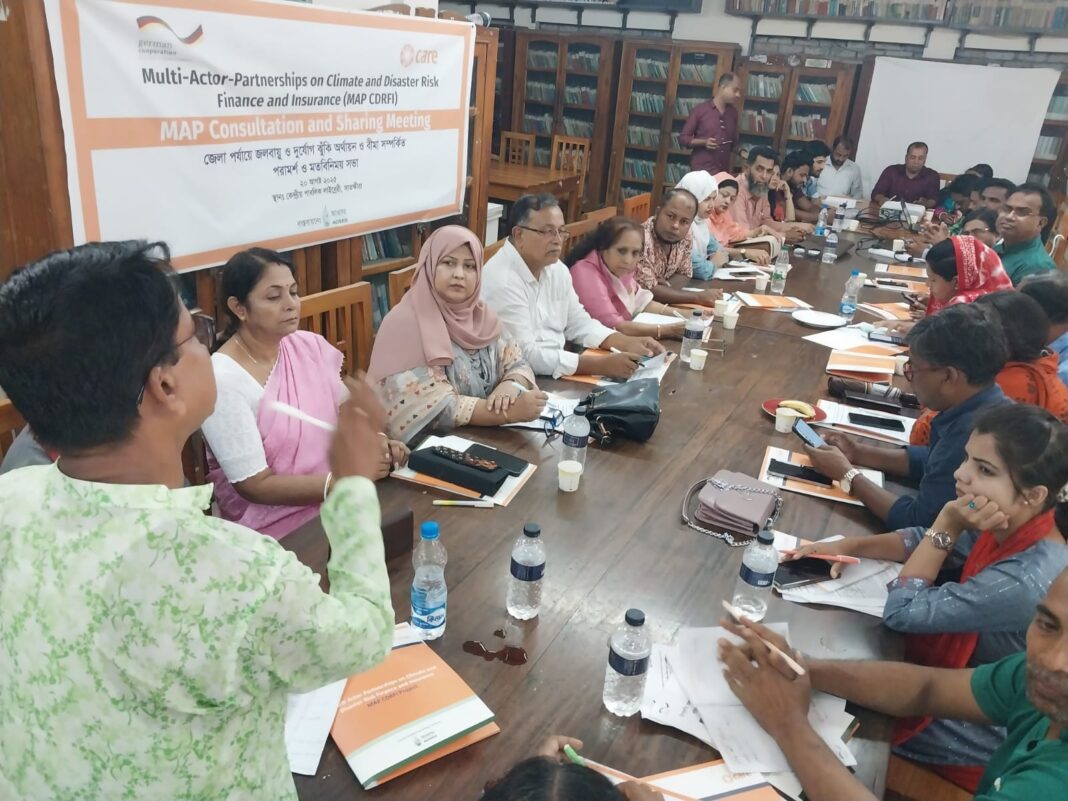 অ্যাওসেড ও কেয়ার বাংলাদেশে যৌথভাবে বিএমজেড অর্থায়িত ম্যাপ-সিডিআরএফআই প্রকল্পের অধীনে সাতক্ষীরা কেন্দ্রিয় পাবলিক লাইব্রেরির মিলনায়তনে জেলা পর্যায়ের “জলবায়ু দুর্যোগ ঝুঁকি অর্থায়ন ও বীমা সংক্রান্ত পরামর্শ ও মতবিনিময় সভা” অনুষ্ঠিত হয়। উপকূলীয় অঞ্চলের তৃণমূল থেকে জেলা পর্যায়ের স্টেকহোল্ডারদের অভিজ্ঞতা ও সুপারিশ জাতীয় ও আন্তর্জাতিক নীতিনির্ধারণ প্রক্রিয়ায় অন্তর্ভুক্তি নিশ্চিত করার লক্ষ্যে অনুষ্ঠিত সভার সভাপতিত্ব করেণ সাতক্ষীরা জেলা ম্যাপের যুগ্ম আহবায়ক মাধব চন্দ্র দত্ত।