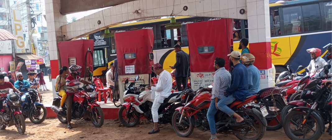স্থানীয় সূত্রে জানা যায়, সম্প্রতি জ্বালানি সরবরাহ নিয়ে নানা গুঞ্জন ছড়িয়ে পড়ায় মোটরসাইকেল, প্রাইভেটকারসহ বিভিন্ন যানবাহনের চালকরা পেট্রোল পাম্পে ভিড় করছেন। কেউ কেউ অতিরিক্ত জ্বালানি কিনে ড্রাম ও বোতলে করে বাসা বা গ্যারেজে মজুদ করে রাখছেন।