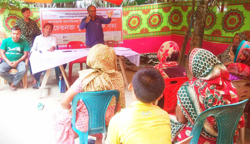 বৃহস্পতিবার (২০ জুলাই) সকালে উপজেলার ইসলামকাটি ইউনিয়নের ঘোনা বাজার এলাকায় বেসরকারী সংস্থা উত্তরণের আয়োজনে অনুষ্ঠিত হয়। অনুষ্ঠানে উপস্থিত ছিলেন উত্তরণের প্রোগ্রাম অফিসার দিলীপ কুমার সানা, প্রজেক্ট ম্যানেজার মোঃ শহীদুল ইসলাম, ফিল্ড অফিসার ইমরুল কবির ও তালা উপজেলা পানি কমিটির সাধারণ সম্পাদক মীর জিল্লুর রহমান প্রমুখ। এসময় সেখানে উপস্থিত কৃষক এবং উদ্যোক্তাদের টিআরএম সম্পর্কে জ্ঞান এবং এই অঞ্চলের কৃষি পদ্ধতিতে এর ইতিবাচক প্রভাব সম্পর্কে অবহিত করা।