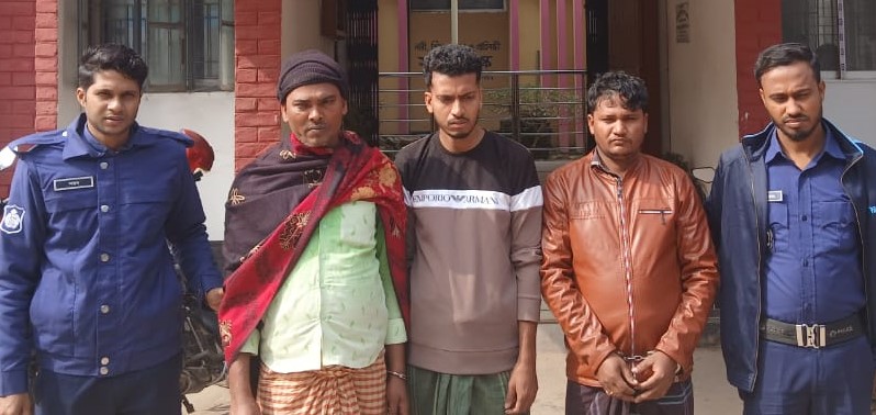 বুধবার (২৫ ডিসেম্বর) রাতে বিশেষ অভিযান চালিয়ে তাদের গ্রেপ্তার করা হয়। গ্রেপ্তার ব্যক্তিরা হলেন রহমত (৪৩), আশিকুজ্জামান (২৫) ও ইমদাদুল ইসলাম (২৭)। তাদের বাড়ি সাতক্ষীরা সদর উপজেলার ধুলিহর (সানাপাড়া) এলাকায়।