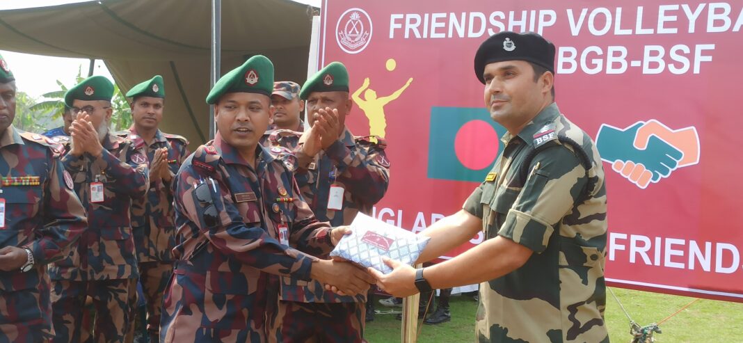 প্রীতি ভলিবল খেলাটি শেষে বিজয়ী ও রানারআপ দলের মধ্যে ট্রফি ও সম্মাননা স্মারক প্রদান করেন বিজিবি ও বিএসএফ কর্মকর্তারা।