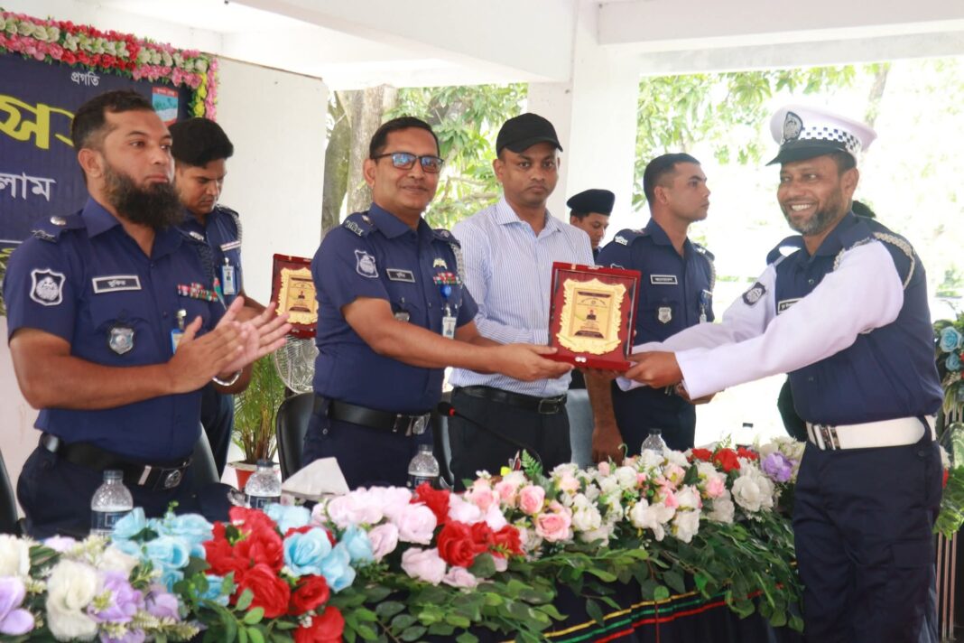 মাসিক কল্যাণ সভায় নির্দিষ্ট ক্যাটাগরিতে ভালো কাজের স্বীকৃতি স্বরূপ বিভিন্ন পদমর্যাদার পুলিশ সদস্যদের নগদ অর্থ ও ক্রেস্ট প্রদান করেন পুলিশ সুপার।