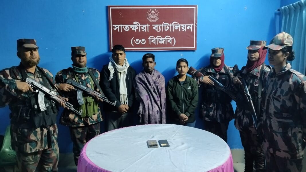 সাতক্ষীরা বিজিবি ৩৩ ব্যাটালিয়নের অধিনায়ক লেঃ কর্নেল মোঃ আশরাফুল হক এক প্রেসবিজ্ঞপ্তিতে জানান, মঙ্গলবার রাত ১১টা ৪৫ মিনিটের সময় ভারত থেকে অবৈধ ভাবে ভোমরা সীমান্তের সীমান্ত পিলার ৪/২-এস হতে ৫০০ গজ বাংলাদেশের অভ্যন্তরে লক্ষীদাঁড়ী নামক স্থানে প্রবেশ করলে সানজিদা (১৯) নামে এক নারীকে আটক করে ভোমরা বিওপির বিজিবি’র জোয়ানরা। এসময় তার নিকট থেকে ৩৫,০০০ হাজার টাকা মূল্যের ২টি ভারতীয় পোকো মোবাইল উদ্ধার করে। সে বাংলাদেশী নাগরিক। তার বাড়ী নারায়নগঞ্জ জেলার বন্দর থানা ও বন্দর গ্রামে। তার পিতার নাম আব্দুল মান্নান। এ সময় তার সাথে থাকা পাচারকারী চক্রের দুই সদস্য সাতক্ষীরা সদর উপজেলার লক্ষীদাঁড়ি গ্রামের তারোক মন্ডলের ছেলে অমল মন্ডল (৩২) ও রুহুল আমিনের ছেলে নুর ইসলামকে (৩০) আটক করে।