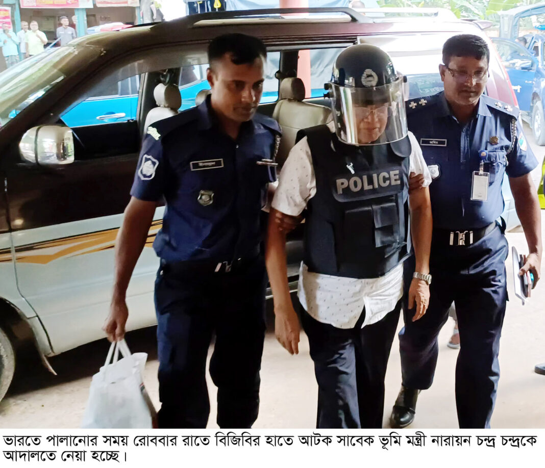 ঝিনাইদহের মহেশপুরের শ্রীনাথপুর সীমান্ত থেকে বিজিবির হাতে আটক সাবেক ভূমি মন্ত্রী নারায়ন চন্দ্র চন্দকে আদালতের মাধ্যমে জেল হাজতে প্রেরণ করা হয়েছে সোমবার সন্ধ্যায়।