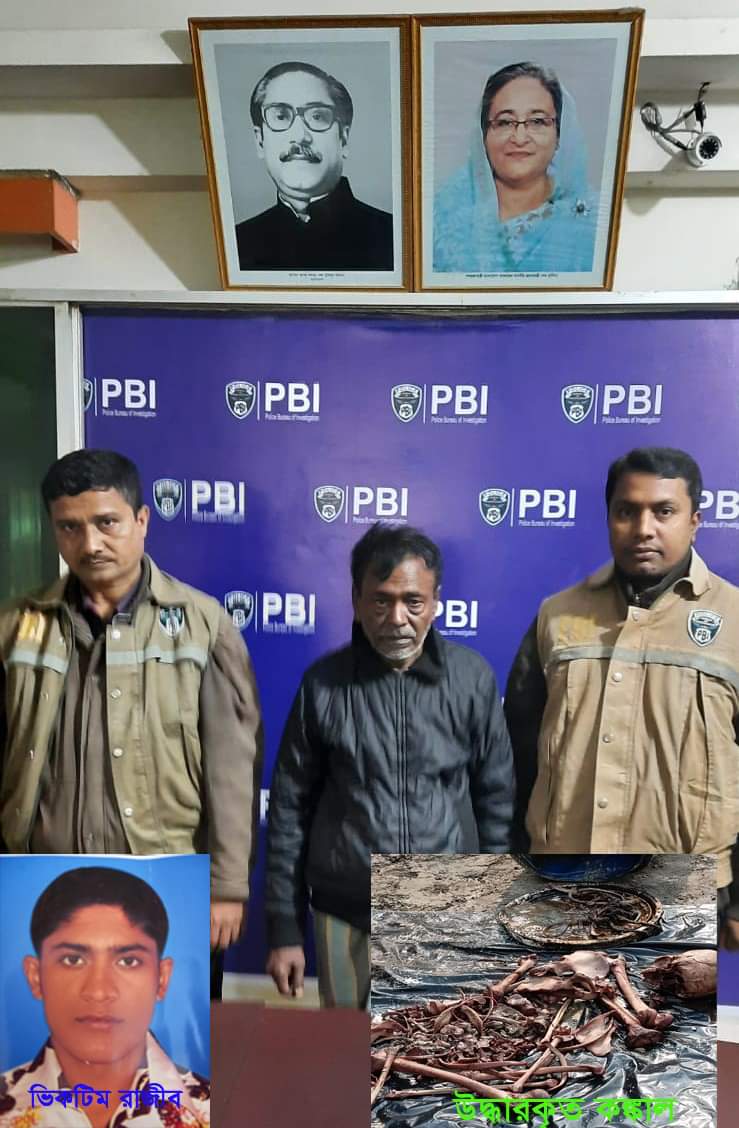কঙ্কালের পরিচয় ও হত্যার সাথে জড়িত থাকার অভিযোগে পিবিআই রিকসাচালক সালামকে আটক করেছে। এ ঘটনায় শেখ সজিবুর রহমান নামে এক ব্যক্তিকে আসামি করে নিহত রাজিব হোসেনের পিতা ফারুক হোসেন মঙ্গলবার (১৭ জানুয়ারি) কোতয়ালি মডেল থানায় হত্যা মামলা করেছেন। আটক সালাম বর্তমানে যশোর শহরতলীর কিসমত নওয়াপাড়ার আবদার ড্রাইভারের বাড়ির ভাড়াটিয়া এবং নড়াইলের লোহাগড়ার মঙ্গলহাটা গ্রামের মৃত নূর মিয়ার ছেলে। তদন্তকারী কর্মকর্তা এসআই জিয়াউর রহমান আটক সালামকে আদালতে সোপর্দ করেছেন। রাজিব হত্যার সাথে জড়িত থাকার কথা স্বীকার করে জবানবন্দি দিয়েছেন সালাম। সিনিয়র জুডিসিয়াল ম্যাজিস্ট্রেট পলাশ কুমার দালাল আসামির জবানবন্দি গ্রহণ করে কারাগারে পাঠানোর আদেশ দিয়েছেন।