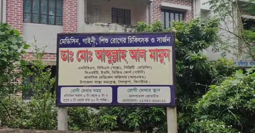 সরেজমিনে গিয়ে শৈলকুপা উপজেলা স্বাস্থ্য কমপ্লেক্সে প্রধান ফোটকে মিললো আবাসিক মেডিকেল অফিসার ডা. আব্দুল্লাহ আল মামুনের নিজের নামের সাইনবোর্ড। সাইনবোর্ডে রোগী দেখার সময় উল্লেখ লেখা আছে সকাল ৬ টা থেকে ৮ টা এবং দুপুর ২ টা থেকে রাত ১০ টা পর্যন্ত।এই সাইনবোর্ড দেখে মনে হলো হাসপাতালের মধ্যে আরএকটি হাসপাতাল।