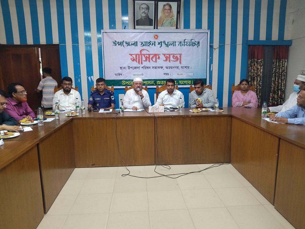 অভয়নগর প্রতিনিধি:অভয়নগরে আইন-শৃঙ্খলা কমিটির মাসিক সভা অনুষ্ঠিত হয়েছে। গতকাল বৃহস্পতিবার বেলা ১১ টায় উপজেলা পরিষদ হল রুমে এই অনুষ্ঠান অনুষ্ঠিত হয়।